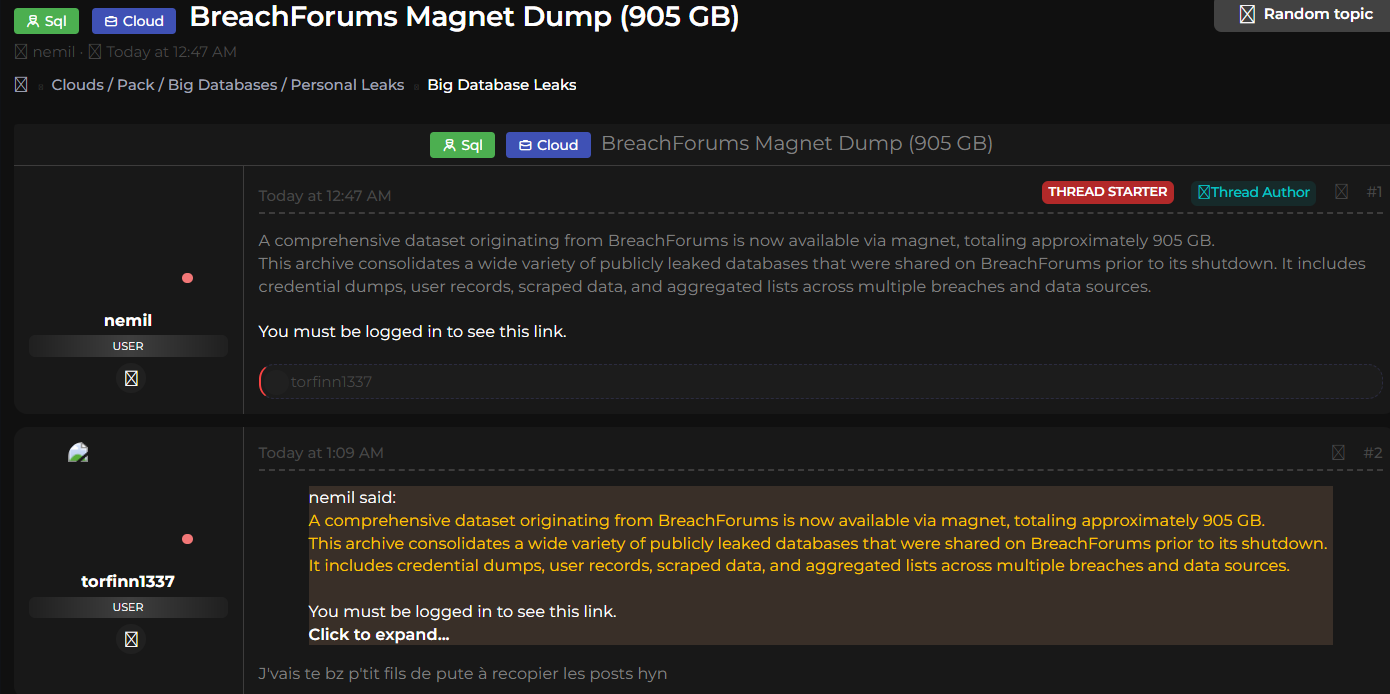 Sql - Cloud - BreachForums Magnet Dump (905 GB) | LeakBase.la - Community Forum